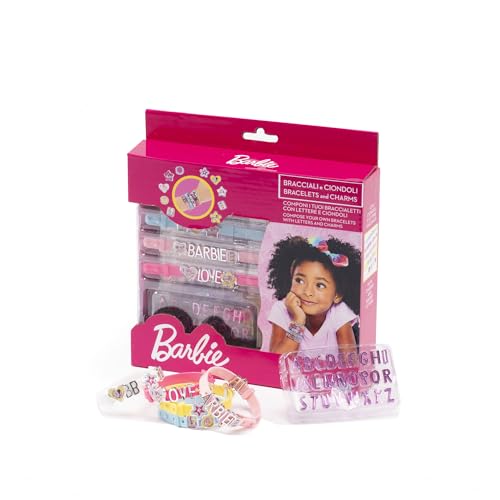 ODS - Barbie Bijoux Collection Lot de 5 bracelets avec pendentifs et lettres modulaires, kit de bracelets bricolage pour fille, âge recommandé +3 ans