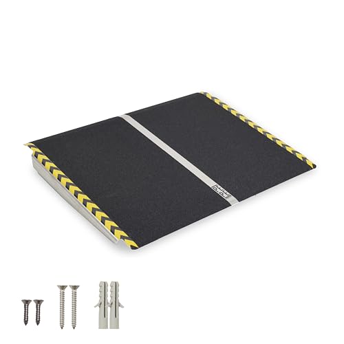 UISEBRT Rampe de seuil de porte - Rampe de seuil en aluminium - Pour fauteuil roulant - Antidérapant - Portable - Avec poignées - Charge maximale : 270 kg (80 x 70 x 10 cm)