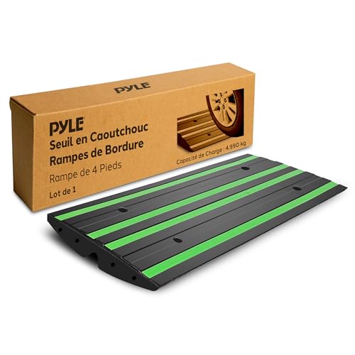 Pyle Rampe de Seuil en Caoutchouc 1,2 m – Rampe Bordure Antidérapante Étanche, Bande Réfléchissante Vertes et Vis d’Expansion, Usage Intensif-Garage, Trottoir, Allée, Voiture, Camion,Fauteuil Roulant