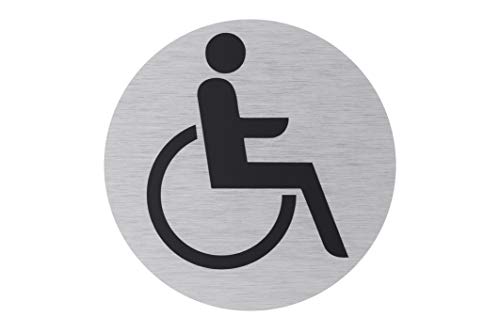 Metafranc Plaque adhésive symbole : utilisateur en fauteuil roulant – Ø 75 mm – En aluminium – Aspect acier inoxydable moderne – Dos auto-adhésif / signalisation / plaque d'information / accessible aux personnes handicapées / 507220