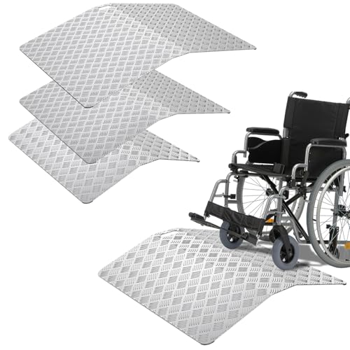 UISEBRT Rampe de seuil de porte, pour fauteuil roulant, en aluminium, antidérapante, portable, avec poignées, capacité de charge 270 kg (60 x 70 x 10 cm)