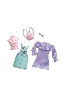 Barbie et ses amies ont fière allure dans ces tenues à la mode! L'ensemble comprend: 1 Robe, 1 Haut, 1 Salopette verte, 1 Lunettes