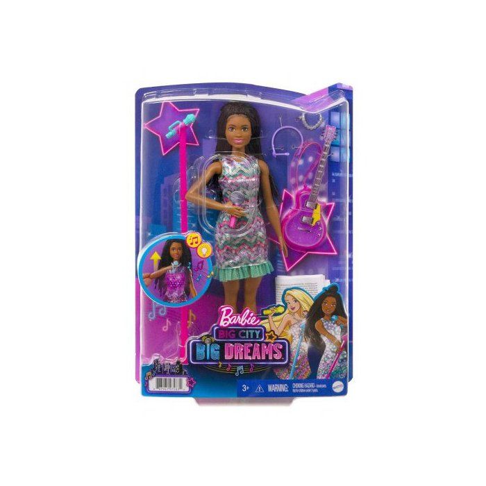 Poupee Barbie Brooklyn Pop Star Musique Son et Lumiere - Chanteuse avec Guitare et Micro - Set Jouet Fashion Fille + Carte