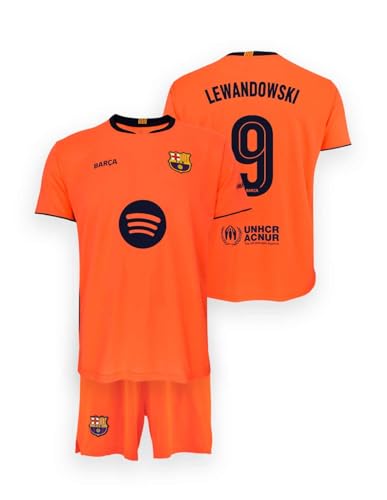 FC Barcelona T-shirt et pantalon unisexe pour enfants, 14 ans, orange, troisième tenue saison 25/26, réplique officielle Lewandowski, polyester