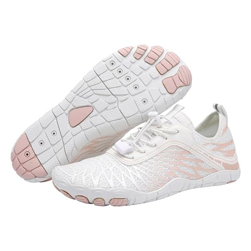 MQSHUHENMY Barefoot Trail Running Shoes, Non-Slip Hiking Footwear for Women (White,39)