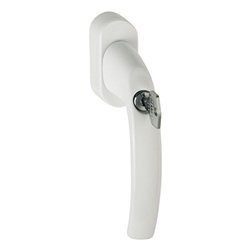 HOPPE 10763968 Poignée de fenêtre de sécurité ATLANTA Secustik avec serrure 45°, VK 7 x 32-42 mm, blanche avec protection anti-effraction accrue avec barillet de verrouillage