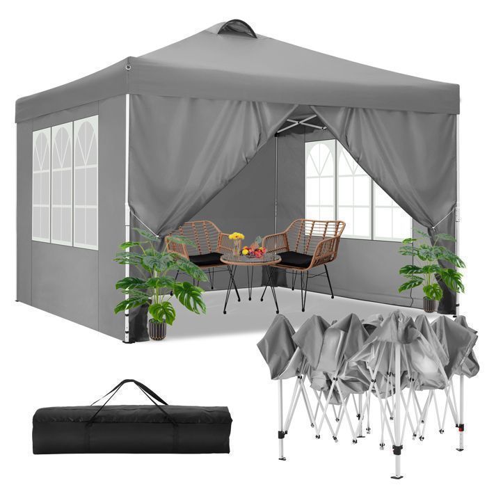 Tonnelle Pliante 3x3 Imperméable Barnum Pliant 3x3 Professionnel Tonnelle de Jardin Exterieur avec 4 Côtés et 4 SacsGris