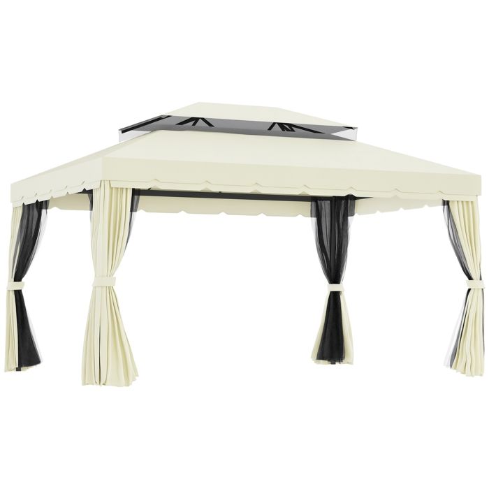 Outsunny Tonnelle de Jardin extérieur 4 x 3 m, Barnum avec Toit Double, Rideaux et moustiquaire, Tente de réception en Aluminium, tonnelle pour terrasse Patio Mariage baptême, crème