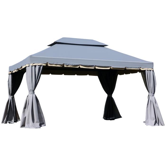 Tonnelle de jardin extérieur - Outsunny - 4 x 3 m barnum double toit tente de réception avec parois et moustiquaires - gris