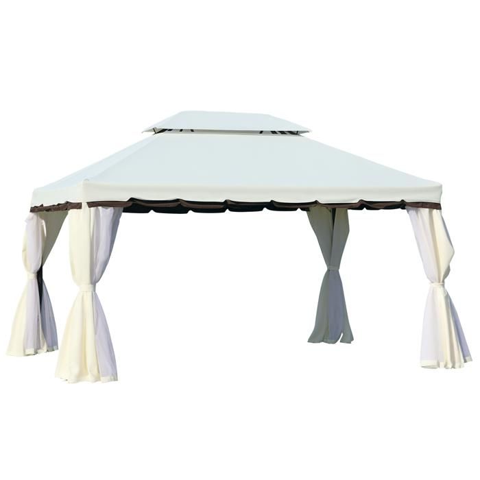 Outsunny Tonnlle de jardin barnum pavillion de jardin double toit avec parois et moustiquaires et amovibles 4 x 3 m crème