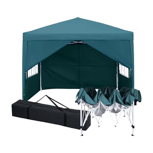 Tonnelle de Jardin 2.5x2.5m,Tente Pliante de Exterieur avec 4 Côtés、Sac de Transport,Tonnelle Pliante Imperméable,Anti UV,Hauteur Réglable,Tente de Camping,Barnum pour Fête,Patio,Camping,Vert Foncé