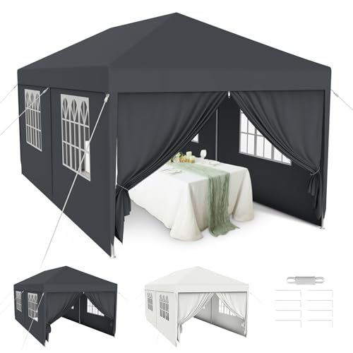 3x9MTonnelle de Jardin,Tente Réception,Gazebo,Pavillon、Tente de Jardin avec Fenêtres、Parois Latérales,Anti UV 50+,Imperméable,Résistant au Vent Auvent Barnum pour Festival Camping Plage,Anthracite