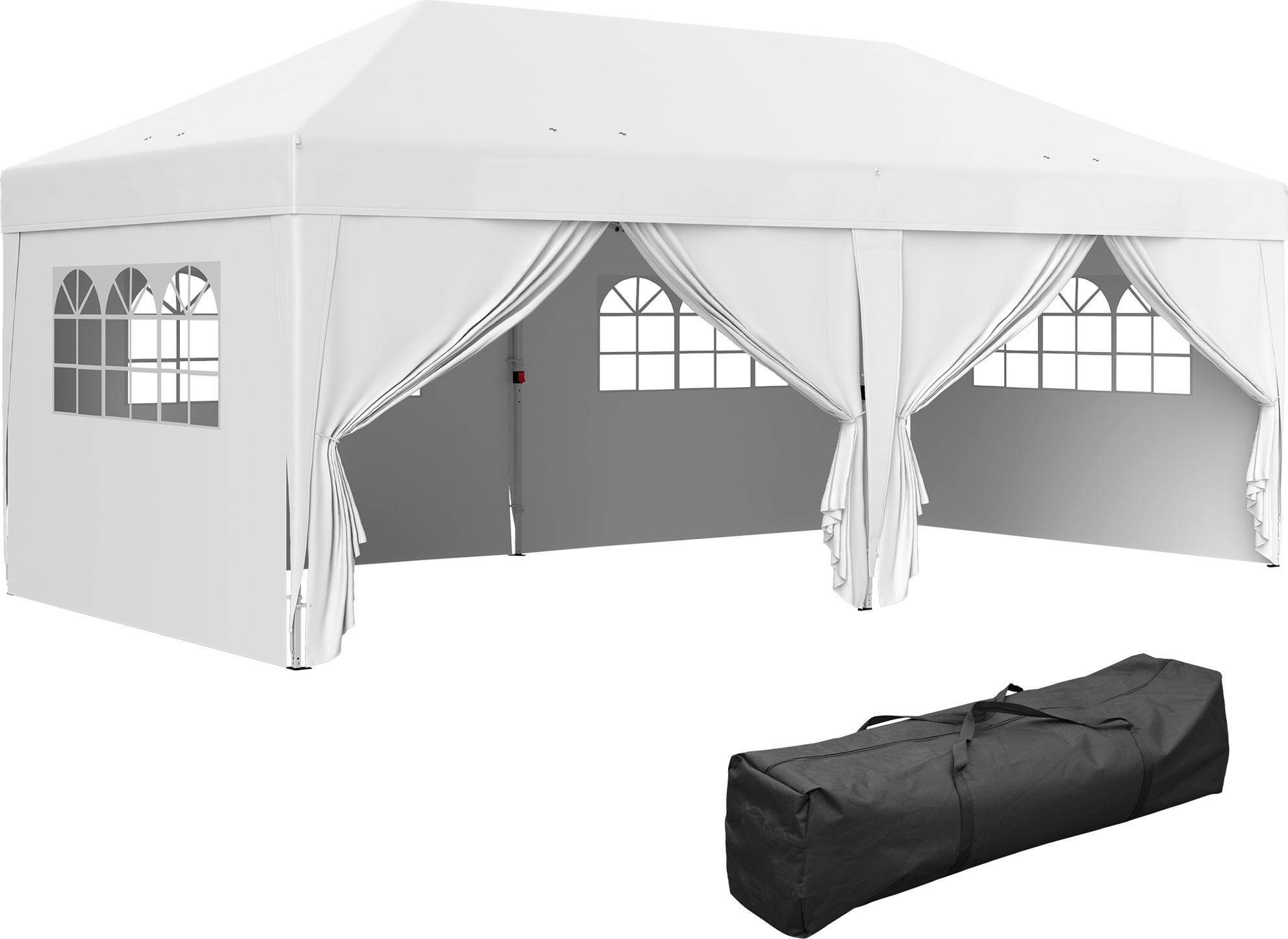 Outsunny Tonnelle de jardin exterieur tonnelle pliante 3 x 6 m pop-up avec 6 parois latrales, trous de drainage, sac de transport inclus, barnum pliant pour camping festival mariage, blanc