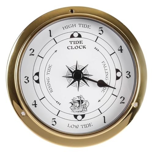 AYCDL Baromètre 3 en 1 - Boîtier en Laiton avec Horloge Et Indicateur De Marée pour Prévisions Météorologiques, sans Pile, Convient pour Le Jardin, L'Intérieur Et L'Extérieur,Barometer