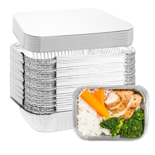 JEXNOVASHOP-Lot de 50 Barquette Aluminium avec Couvercle, 850ml Barquette Aluminium Barbecue Idéal pour Barbecue, Cuisson, Congélation (21 x 15 x 4,5 cm)