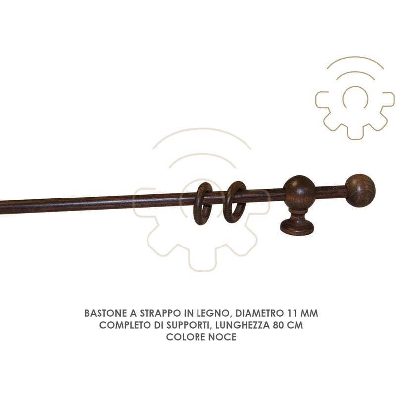 Inferramenta - Tringle a rideau en bois de noyer 11 mm longueur 80 cm avec supports
