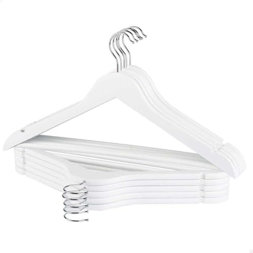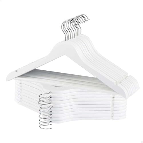 AKTIVE Max Home 16460 Lot de 10 cintres en Bois, Couleur Blanche, qualité A, 44,5 x 23 cm, Crochet en Acier Rotatif à 360°, avec encoches et Barre inférieure, pour Pantalons, Costumes, Chemises,