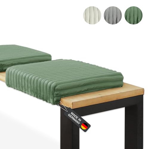 Lycce Coussin de banc Deluxe à pince avec 1 barre, rembourrage supplémentaire, coussin d'assise en velours côtelé super large vert avec système de fixation par pinces, profondeur de banc à partir de