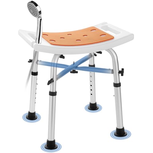 KSITEX Tabouret de Douche, Chaise de Bain avec Siège Rembourré, Banc de Bain Réglable en Hauteur Tabouret de Douche avec Support à Barre Transversale Renforcée