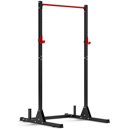 Ultrasport Mixte Banc de musculation-Cage à Squats en Acier Massif, avec 2 Barres de Sécurité, Barre de Traction, Barre de Dips, Rameur - Noir-Rouge, 145.5 x 141 x 213.5 cm
