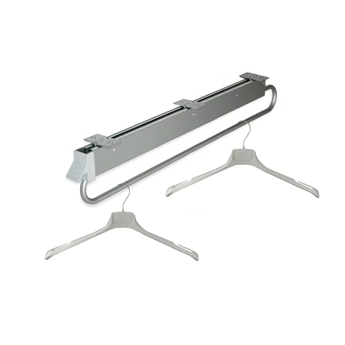 Organiseur d'armoire avec barre coulissante 800 mm – Porte-manteau amovible pour placard, gris métallisé, avec poignée avant et rails avec roulements à billes, en acier et plastique