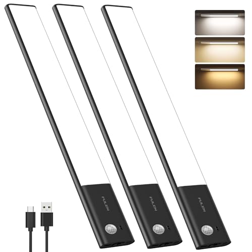 FULEN Lampe LED Rechargeable, 38CM Barre LED Cuisine avec Détecteur de Mouvement Intérieur, Lumière Sans Fil avec Batterie 3500mAh, Éclairage LED Cuisine Sous Meuble, 3 Températures de Couleur,Noir