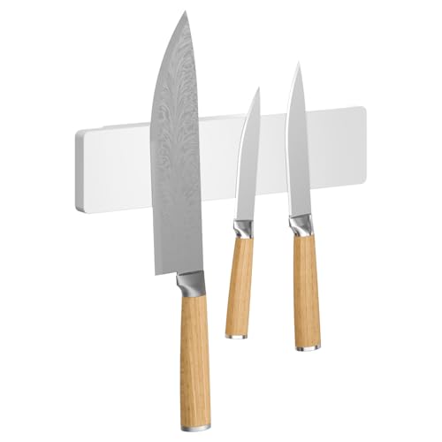 tesa Accessoires de cuisine Barre Magnétique Porte-couteaux - Système Autocollant pour un Rangement peu Encombrant des Couteaux dans la Cuisine - avec Adaptateur, Montage Mural sans Perçage - Blanc