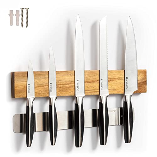 Coninx Porte Couteaux de Cuisine 40cm | Barre Aimantée porte couteaux | Barre magnétique en Acacia pour Couteau cuisine | Blocs couteaux | Aimant couteau mural | barre cuisine | Support aimanté