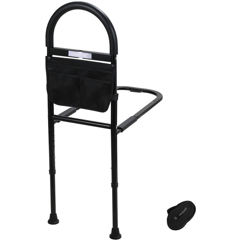 HOMCOM Barre d'appui lit sur pieds protection réglable 5 hauteurs pochette rangement 52 x 85-95 x 67-100 cm blanc noir