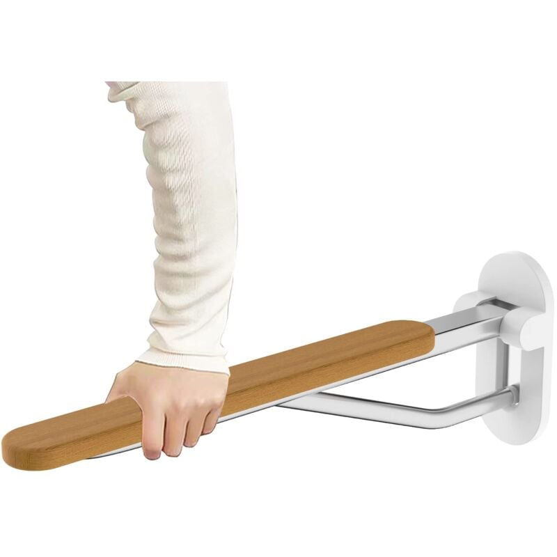Barre D'appui Pliable pour Toilettes Mural Bois,Barre de Sécurité Relevable Wc Handicapé,Poignée WC Rabattable de Salle de Bain pour Handicapé, Âgé,