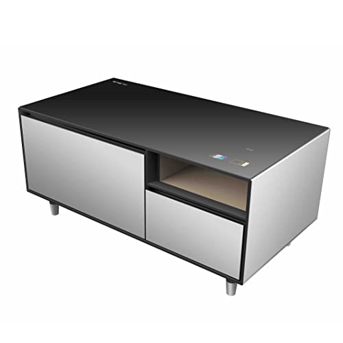 Emerio MusicFridge – Refroidisseur de boissons (68 L) avec congélateur (14 L), barre de son et table de salon, Bluetooth, 2 ports USB, 1 x USB-C, son sonore, boutons tactiles, surface en verre trempé