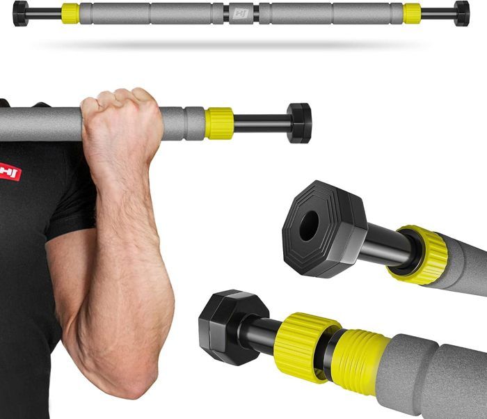 Hop-Sport Barre de Traction pour Porte HS-M050DP Barre de Porte Réglable 65-100cm Fixation Sans Perçage Charge max. 150kg Jaune