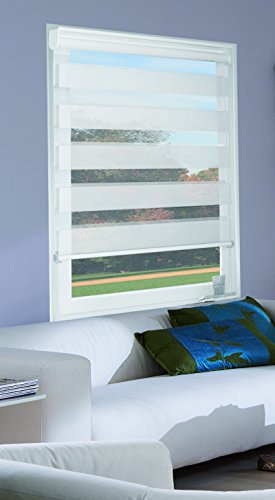 Home Maison - Store Enrouleur Jour/Nuit - Polyester Bi-Matière - Tissu Voile et Tamisant - Mécanisme à Chaînette - Fixation sans Percage - Barre de Lestage Blanche - 107 x 170 cm - Ivoire