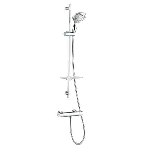 Wirquin 60721393 Barre de douche avec mitigeur thermostatique Rimini comfort 5 jets, chromé