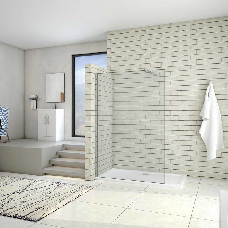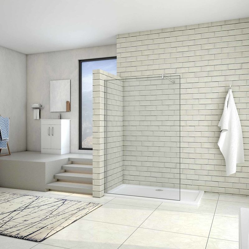 Aurlane - pack paroi de douche a l'italienne - verre transparent 6mm - paroi + barre de fixation recoupable