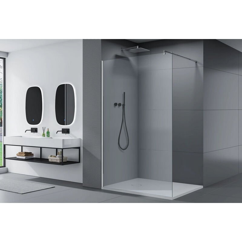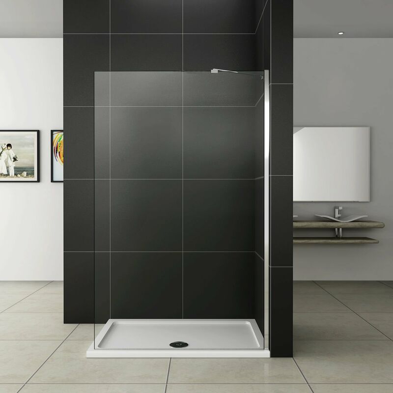 Aica paroi de douche 90x200cm douche à l'italienne en 10mm verre anticalcaire et securit avec une barre de fixation extensible