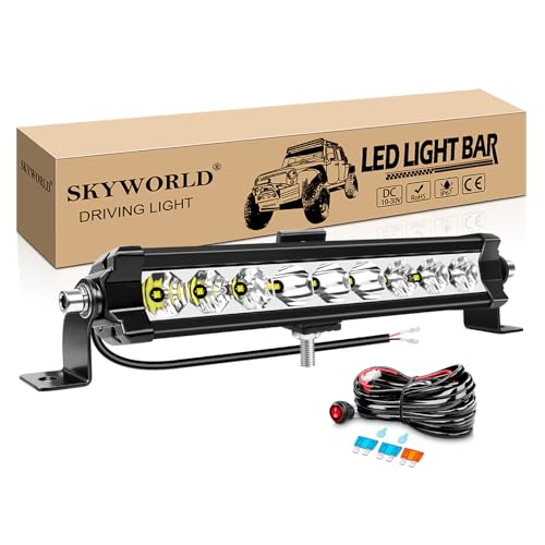 SKYWORLD 28 cm 11 pouces 30W Slim Barre Led 4x4 avec 12V faisceau de câblage kit, Longue portée Barre lumineuse led, Straight leds light bar pour Offroad Véhicules Voiture camions ATV UTE SUV, 6000K