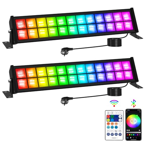 T-SUNUS Projecteur LED RGB Exterieur, 50W Barre RGB Projecteur LED Couleur WIFI avec APP Bluetooth et Télécommande, Étanche IP65 Pour Fête Bar Jardin Halloween