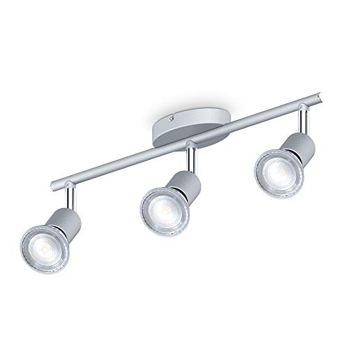B.K.Licht plafonnier 3 spots pivotants & orientables, 3 ampoules LED 5W GU10, barre spots plafond salon salle à manger cuisine couloir, lumière blanche neutre 4000K, couleur titane