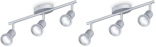 B.K.Licht plafonnier 3 spots pivotants & orientables, 3 ampoules LED 5W GU10, barre spots plafond salon salle à manger cuisine couloir, lumière blanche neutre 4000K, couleur titane (Lot de 2)