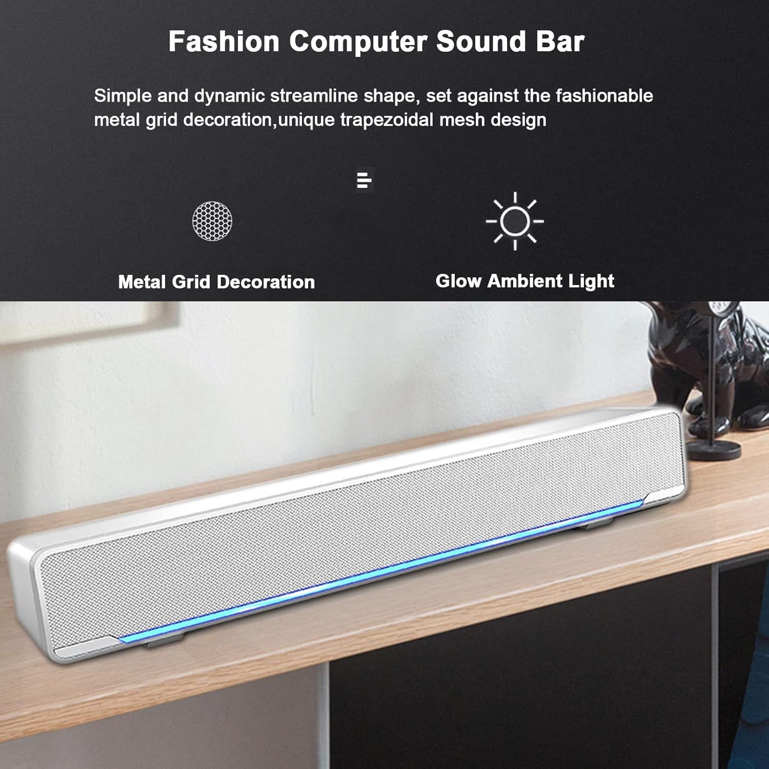Barre de Son stéréo Filaire USB 3D avec lumière respiratoire à LED Bleue pour Haut-parleurs de télévision/cinéma Maison, Jeux, projecteurs, 12 Pouces