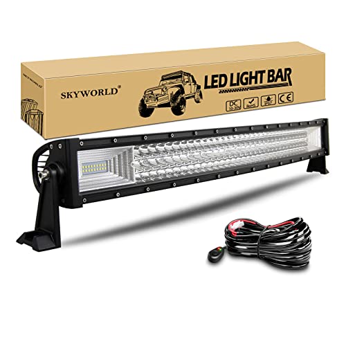 SKYWORLD 32 Pouces 80 cm 405W Barre led incurvée avec 12V faisceau de câblage kit, Longue portée Barre lumineuse led light bar Rampe pour 4x4 Offroad Véhicule Voiture Camion SUV UTE ATV