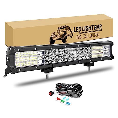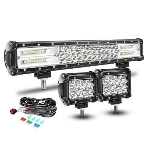 RIGIDON Barre de led 4x4 avec 12V faisceau de câblage kit, 45cm 18" 252W etanche barre lumineuse led, 2pcs 10cm 36W feu de travail led pour tracteur véhicules voiture camion bateau hors route