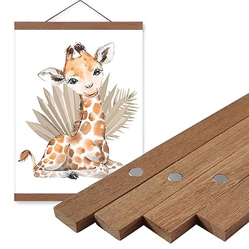 Youihom 4pcs/set Barre Magnetique pour A3 Poster Affiche Cadres DIY Suspendue Barre Magnétique en Bois pour Accrocher des Tableaux et Impressions d'art Mural (teak wood)