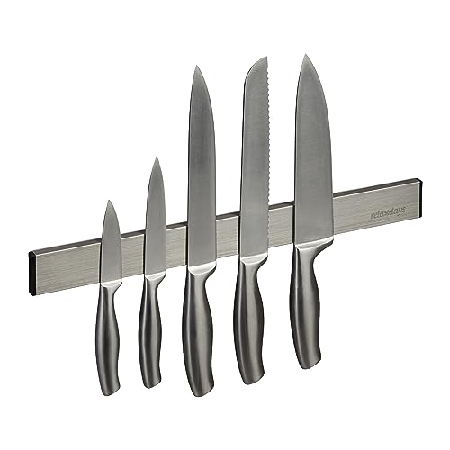 Relaxdays Barre magnétique Couteaux, autocollante, 40 cm de Long, Murale, Aimant Cuisine, Outils, Atelier, argenté/Noir