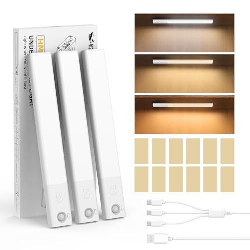 Smiling Shark Lampe de Placard, HM-01 Lampe LED d'armoire Sans Fil 1200mAh 3 Températures de Couleur & Mouvement Detecteur Lumière Barre Éclairage Intérieur Magnétique Pour Armoire Cuisine (3 Pack)