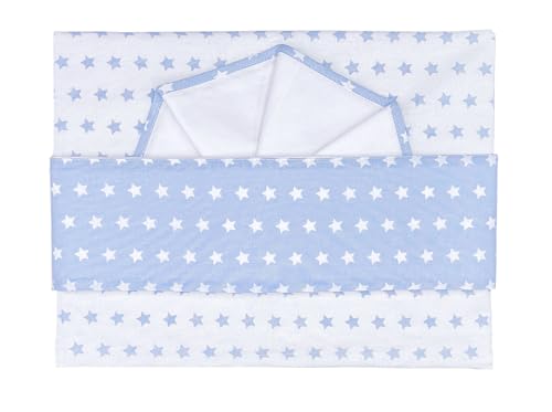 Andy & Helen Lot de 3 berceaux. Dessus + dessous avec élastiques pour berceaux, côtés de lit + taie d'oreiller tout en fantaisie étoiles, bleu ciel