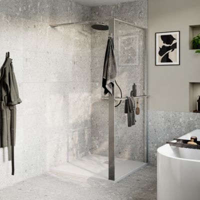 Paroi de douche à l'italienne l.120 x H.195 cm, verre transparent, profilés chromé, GoodHome Evanna + barre fixe
