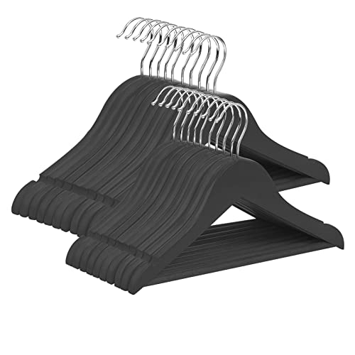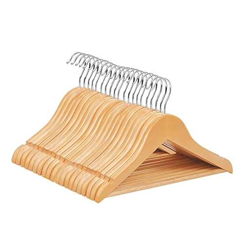 Lot de 20 cintres en Bois Naturel avec Barre Ronde pour Pantalon et encoches d'épaule pour Manteaux, Vestes, Costumes, Robes, Pantalons, Solides et durables