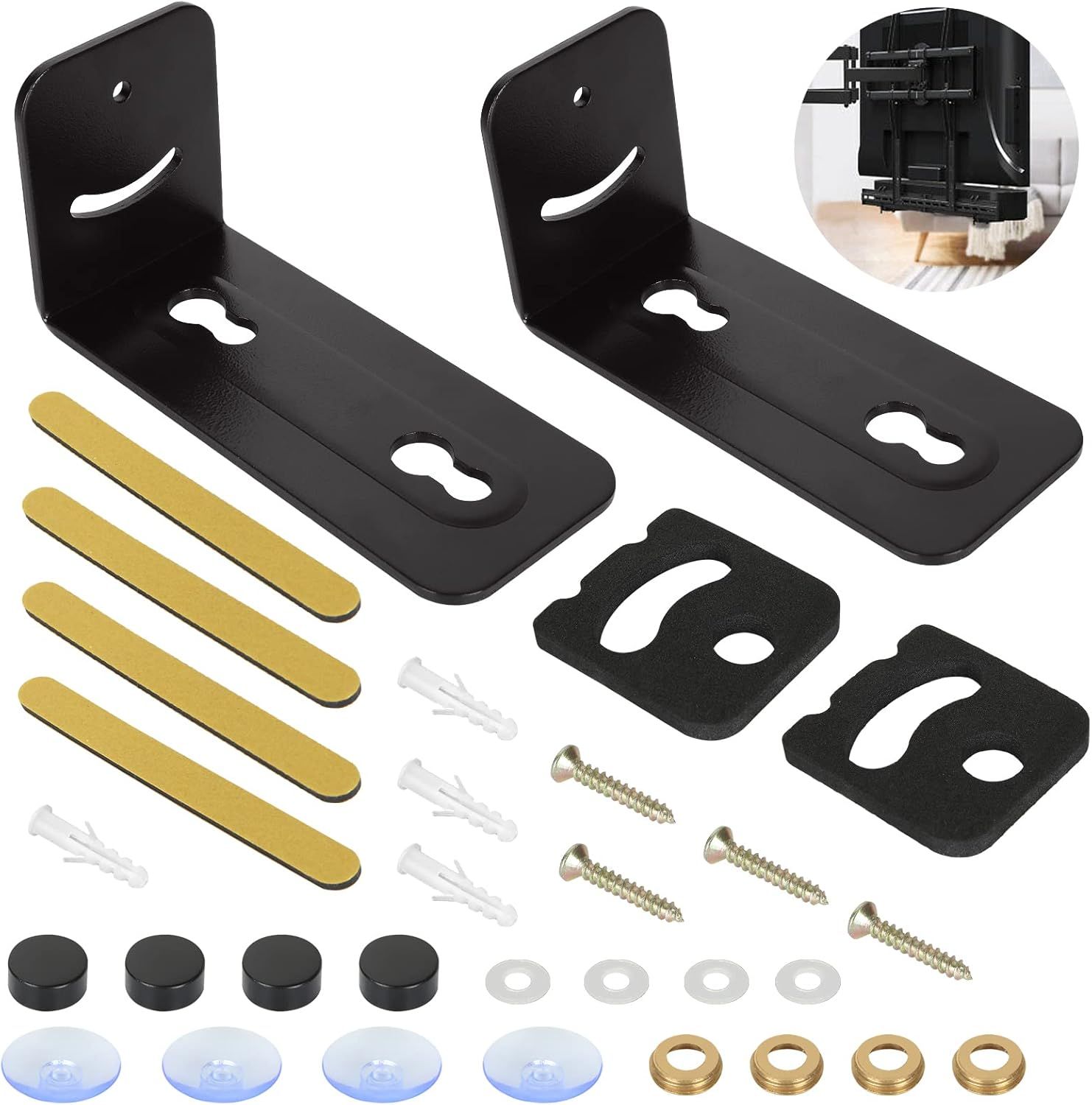 Lot De Supports Muraux En Métal Pour Barre De Son Universel, Antidérapant, Sous La Télévision, Angle Réglable, Support Mural Robuste Pour La Plupart Des Barres De Son[Audio1507]